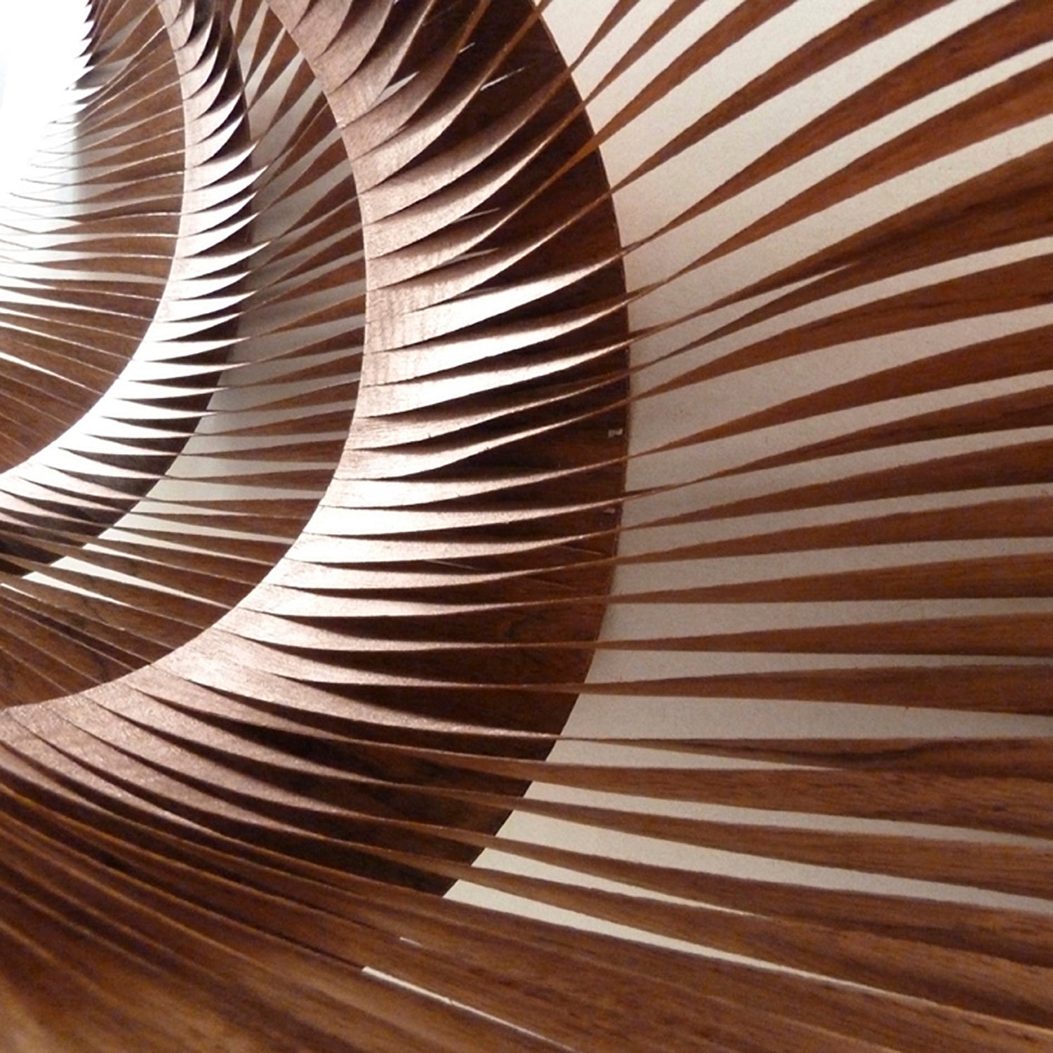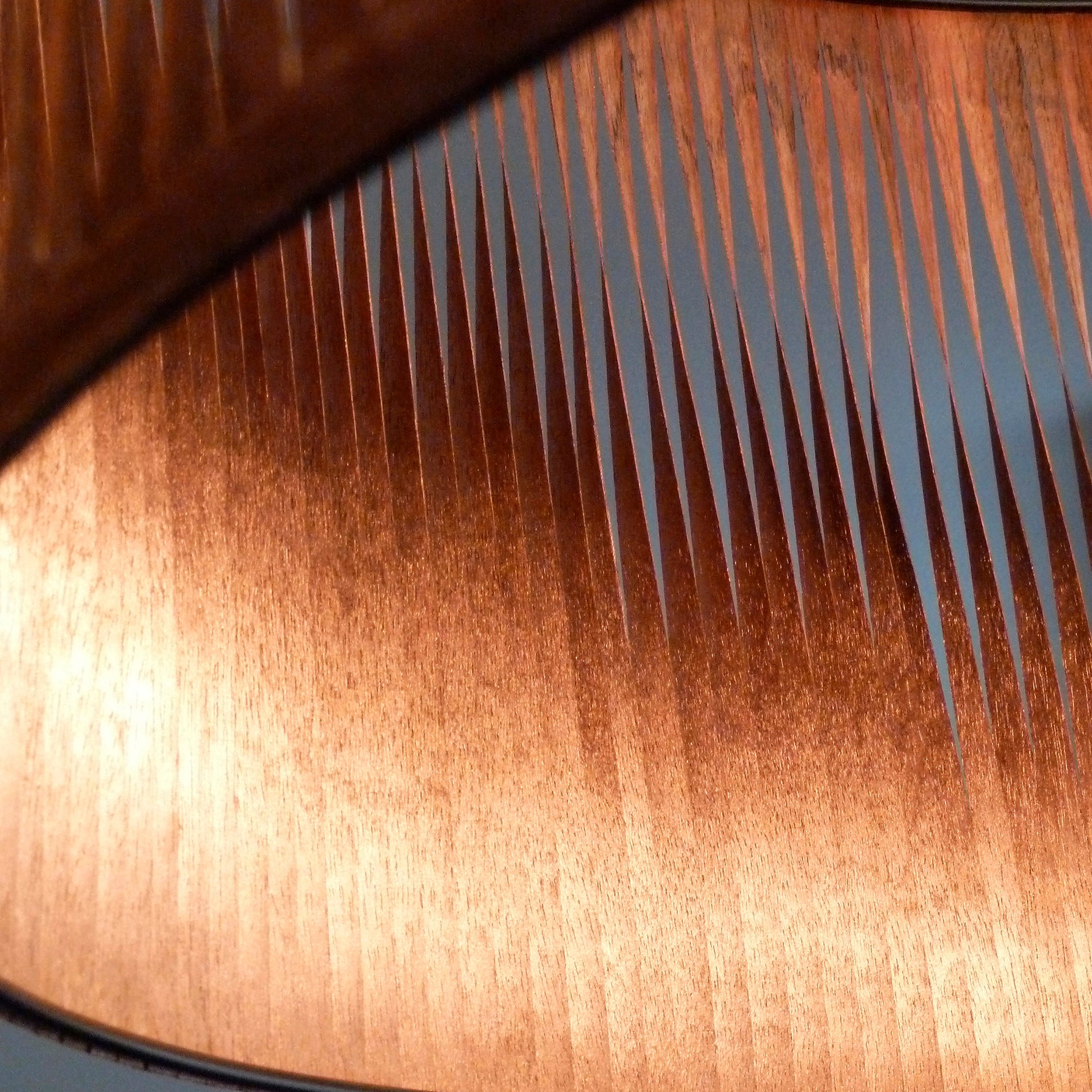 Lamelles d'étimoé torsadées avec une face peinte en cuivre rose.
