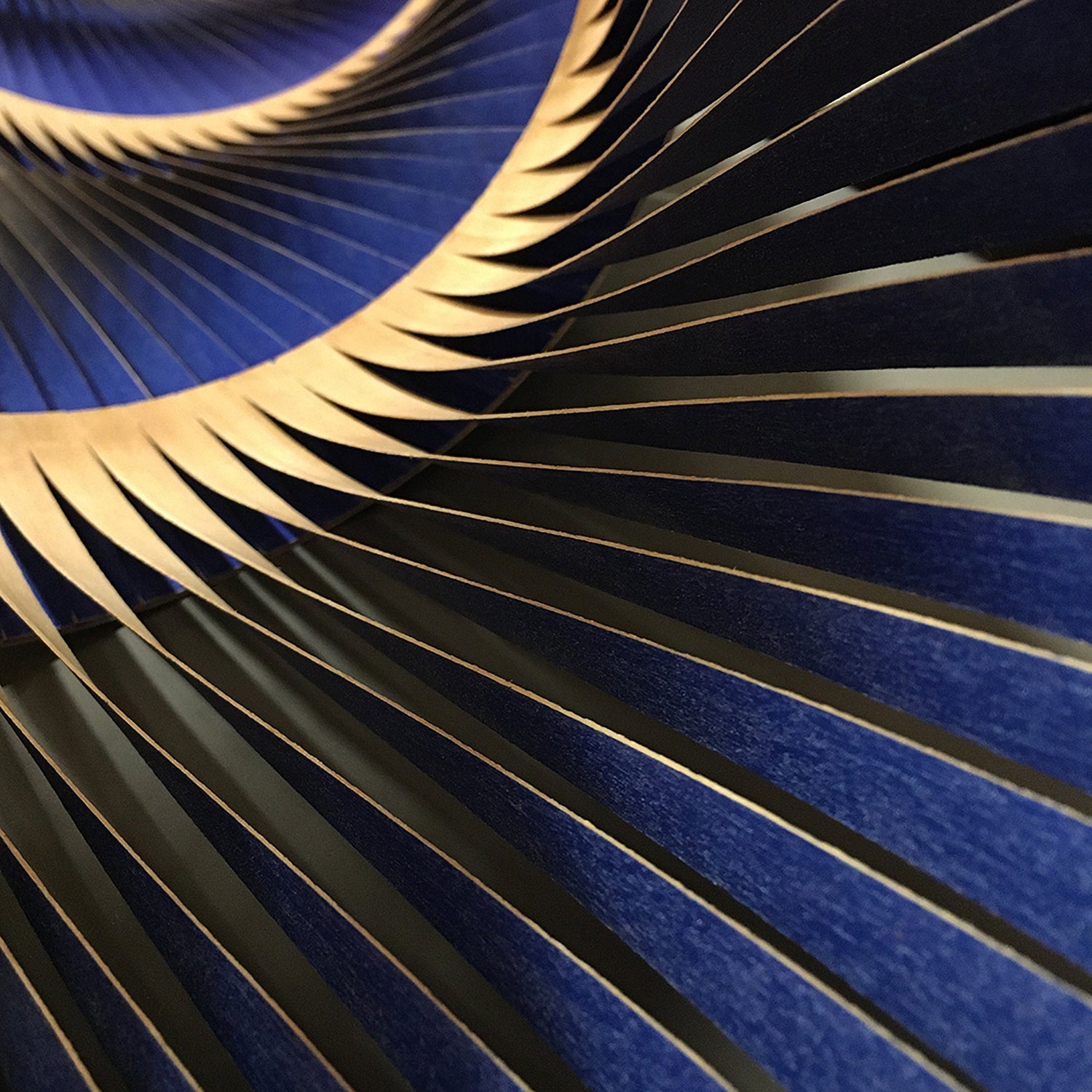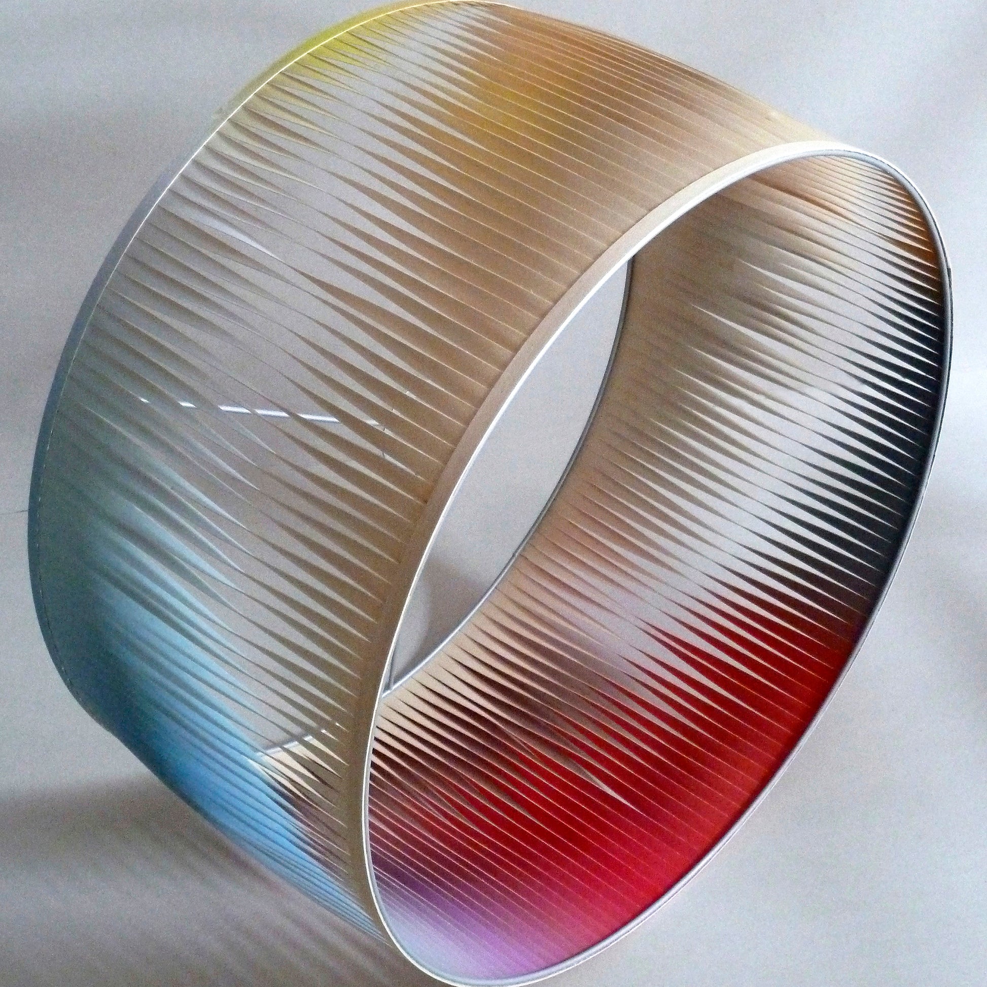 Lamelles de bouleau torsadées avec une face peinte dans un dégradé de couleurs vives