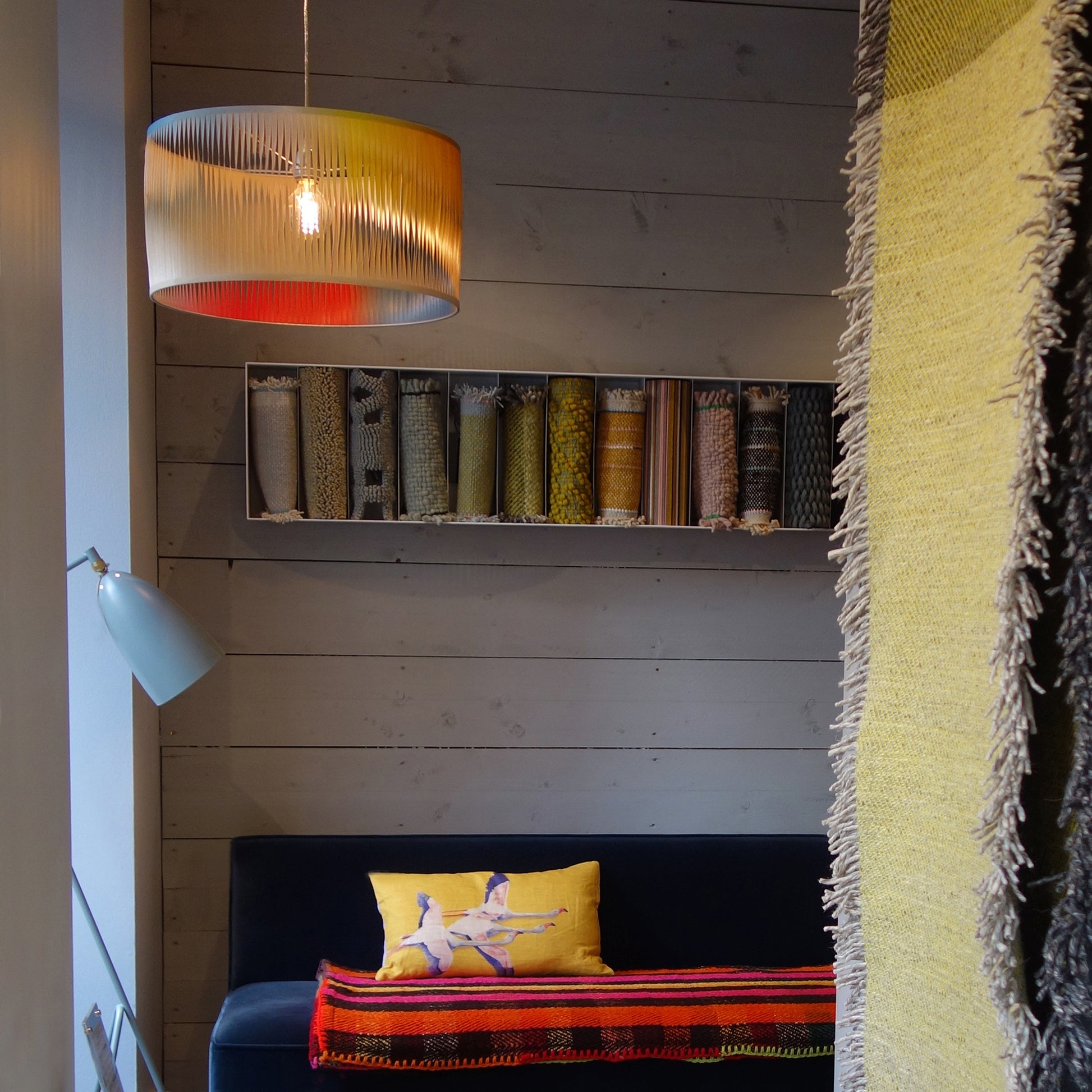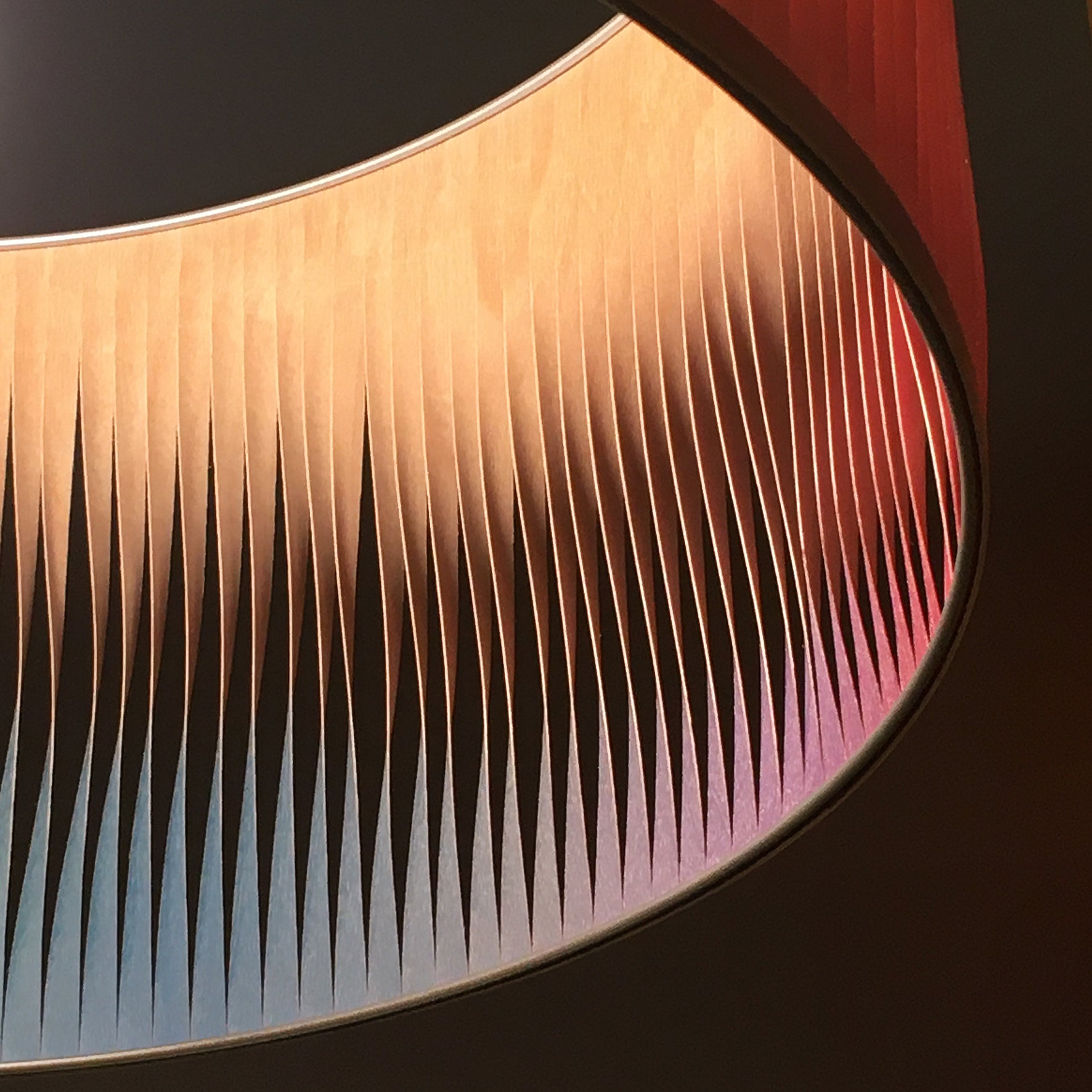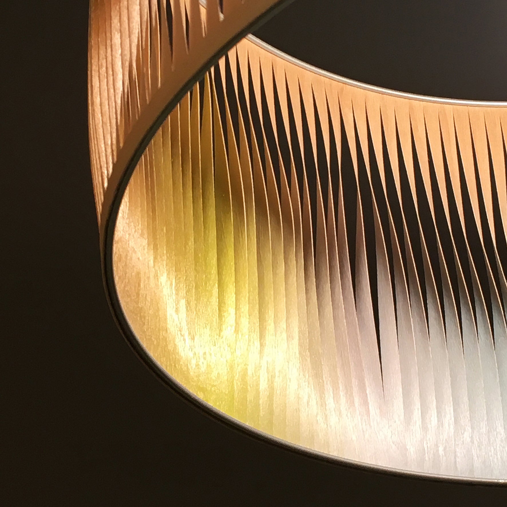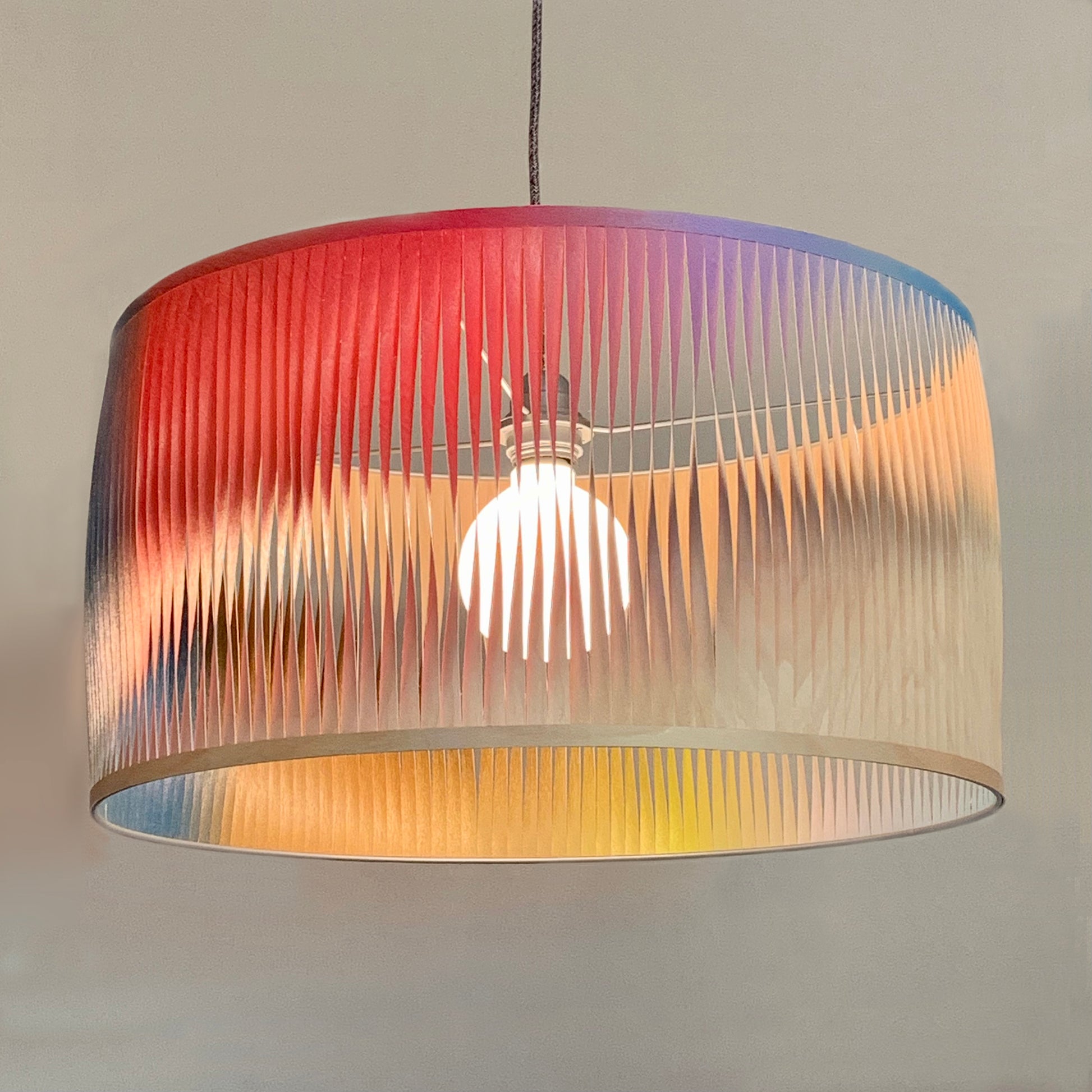 - Modèle en bouleau version polychrome avec un dégradé de couleurs sur tout le périmètre de l'abat-jour : subtiles et infimes variations de teintes (gamme solaire)