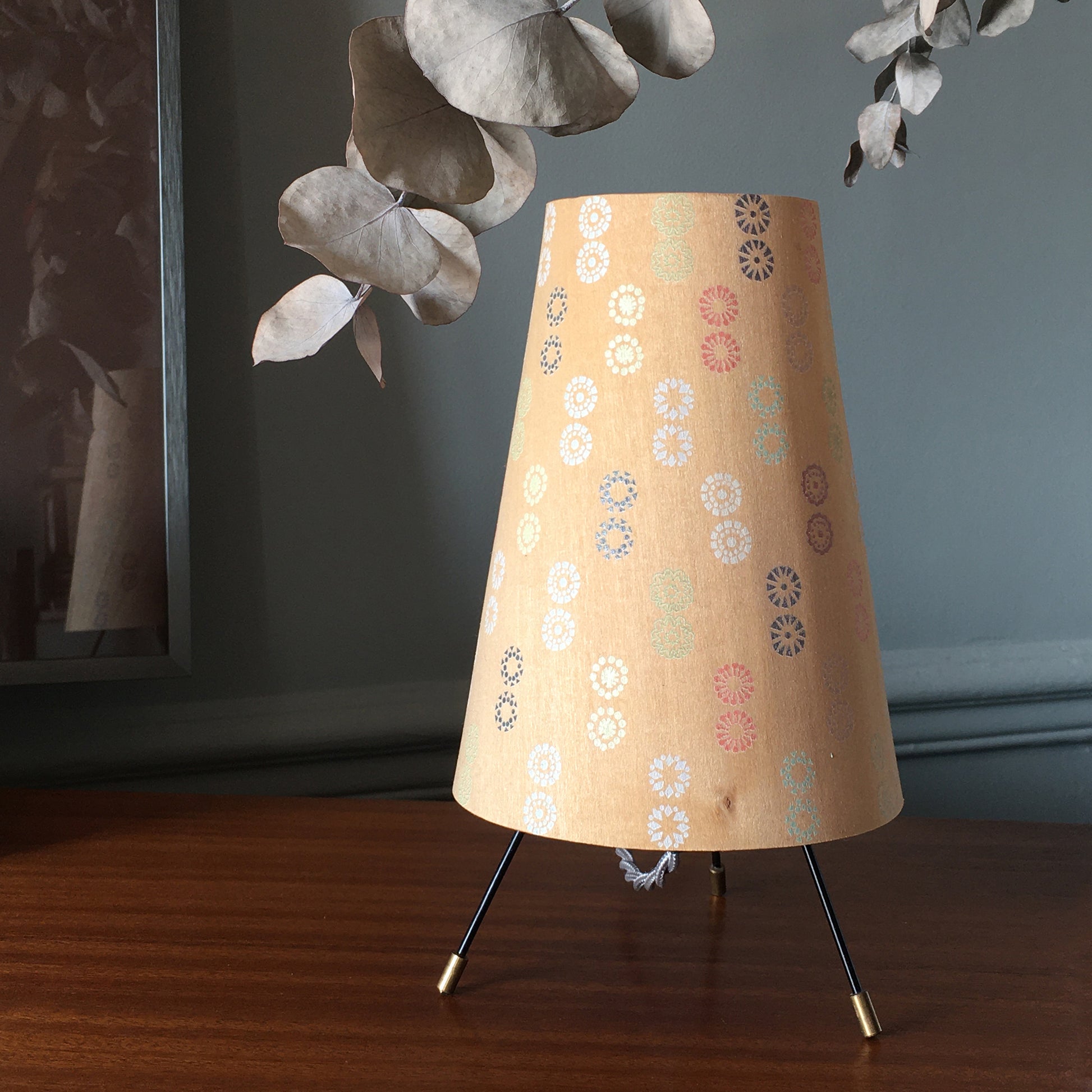 - Lampe à poser en feuille de bouleau et motifs peints